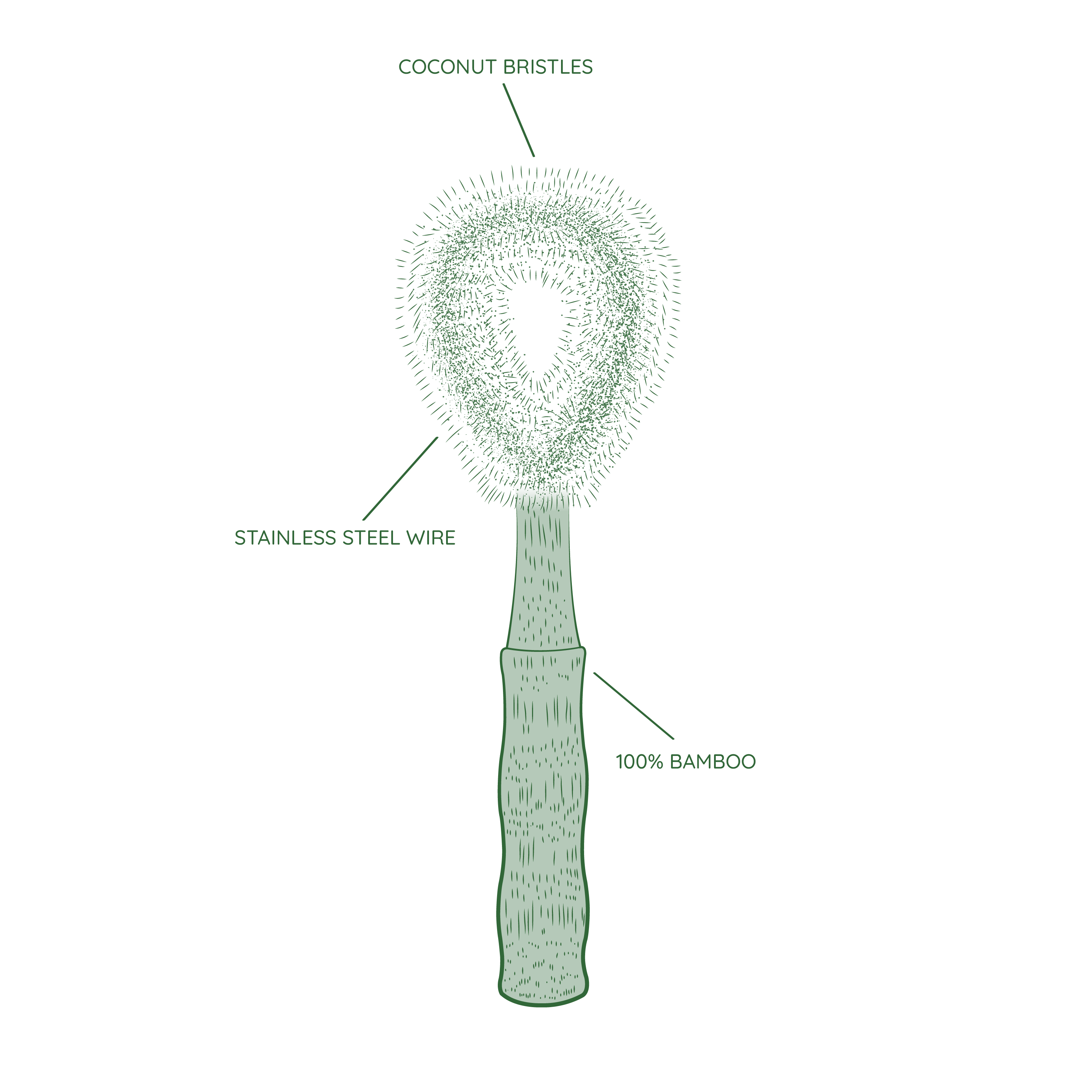 Furça e enëve është e përbërë nga një dorezë druri bambu, fije kokosi dhe stainless-steel. Ka një kokë të përkulur në formë të rrumbullakët, e cila është krijuar për të arritur lehtësisht të gjitha zonat. Dendësia e lartë e qimeve siguron një pastrim të plotë me fijet e kokosit. Doreza bambu ka një formë ergonomike për një kapje të sigurt dhe të rehatshme.